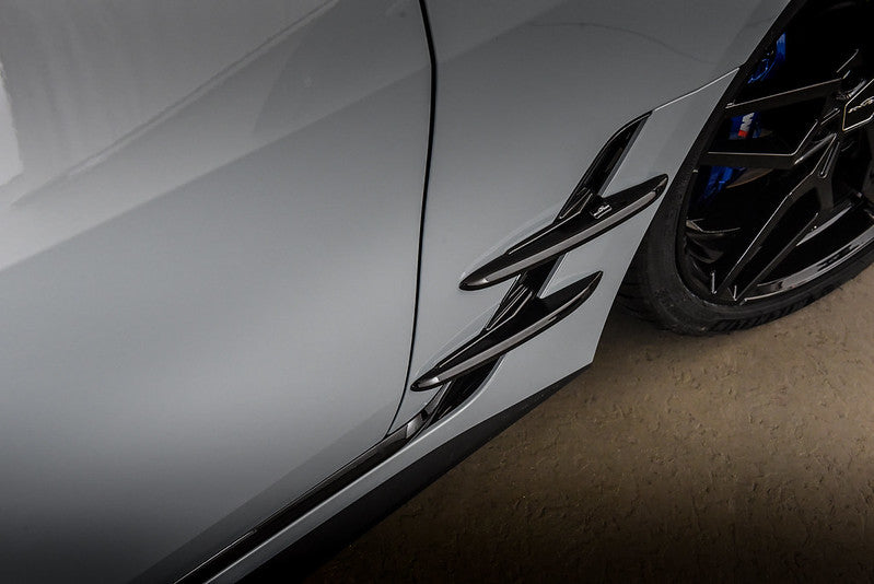 Due to its excellent mechanical properties, PUR (polyurethane) is particularly suitable for use in areas that require high wear resistance, such as high-quality automotive engineering. PUR is easy to form, very dimensionally stable, and – compared to other plastics – very lightweight. It is particularly easy to paint (even multiple coats if necessary). Polyurethane is created through a chemical reaction that takes place immediately before the resulting material is processed. Polyol and isocyanate react to form polyurethane in a mixing head. PUR achieves its positive product properties, among other things, through its processing as "PUR Integral Rigid Foam." Thanks to its excellent static properties, it is particularly suitable for technically sophisticated molded parts and self-supporting products. The walls of these parts are somewhat thicker, but the strength-to-weight ratio is still excellent. Typically, the reaction mixture from the mixing head and sprue is poured into a closed aluminum or epoxy resin mold, where it cures to form the molded part. PUR Integral Rigid Foam is particularly impact-resistant and tough-elastic, yet flexible and abrasion-resistant. The aerodynamic components produced in this way are deburred, sanded, and primed – as a special service from AC Schnitzer and to simplify handling for the customer. Once primed, AC Schnitzer aerodynamic components can be painted in any imaginable color on-site by the paint shop of their choice.